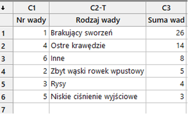 - Sygnał procesowy jest prosty – z perspektywy liczby wad, zajmij się redukcją lub eliminacją wad związanych z brakującym sworzniem, czyli problemem największym